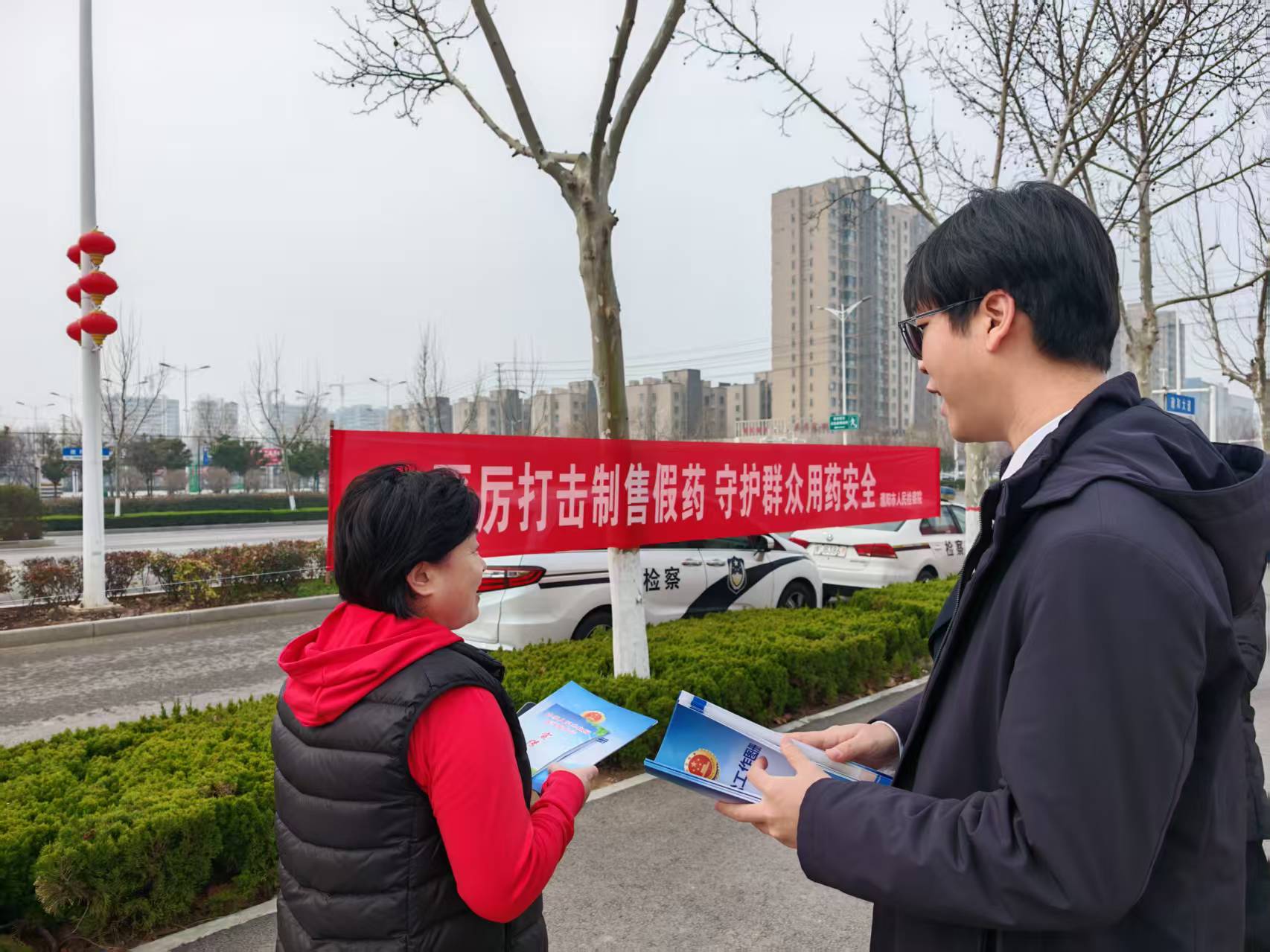 同日上午,市、县两级检察机关联合当地市场监管部门,深入台前县多家药店开展走访宣传,检察干警现场告知药品经营者药品购销和管理相关法律法规,引导其依法依规开展经营活动,严格落实主体责任,坚决杜绝“三无”药品流向市场、流入消费者手中,从流通环节筑牢用药安全屏障。 法治护航乡村 检察情系民生